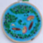 This is my first attempt at aerial embroidery (#aerialembroidery) view along with additional medium other than threads. I have used felt for water lily leaves and hats of the lily pluckers and used fabric glue to stick them to the fabric, and fabric paint for the water. The embroidery part comprises of french knots, backstitches, satin stitches and stem stitches.
